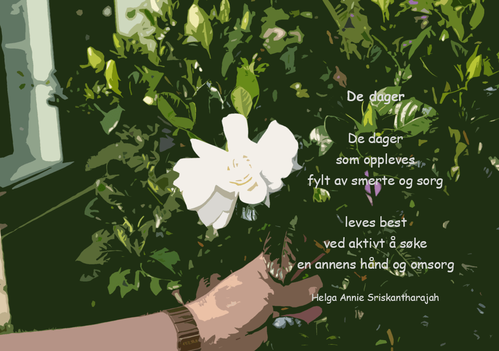 Jeg har etter hvert lært at når jeg har det vondt, så er det mange rundt meg som ønsker å hjelpe meg. Jeg har ganske mange flere rundt meg, enn jeg kanskje tidligere har trodd. Og når jeg aktivt går ut og ber om hjelp, ber om støtte, trøst og en samtalepartner – så har jeg en der med en gang.